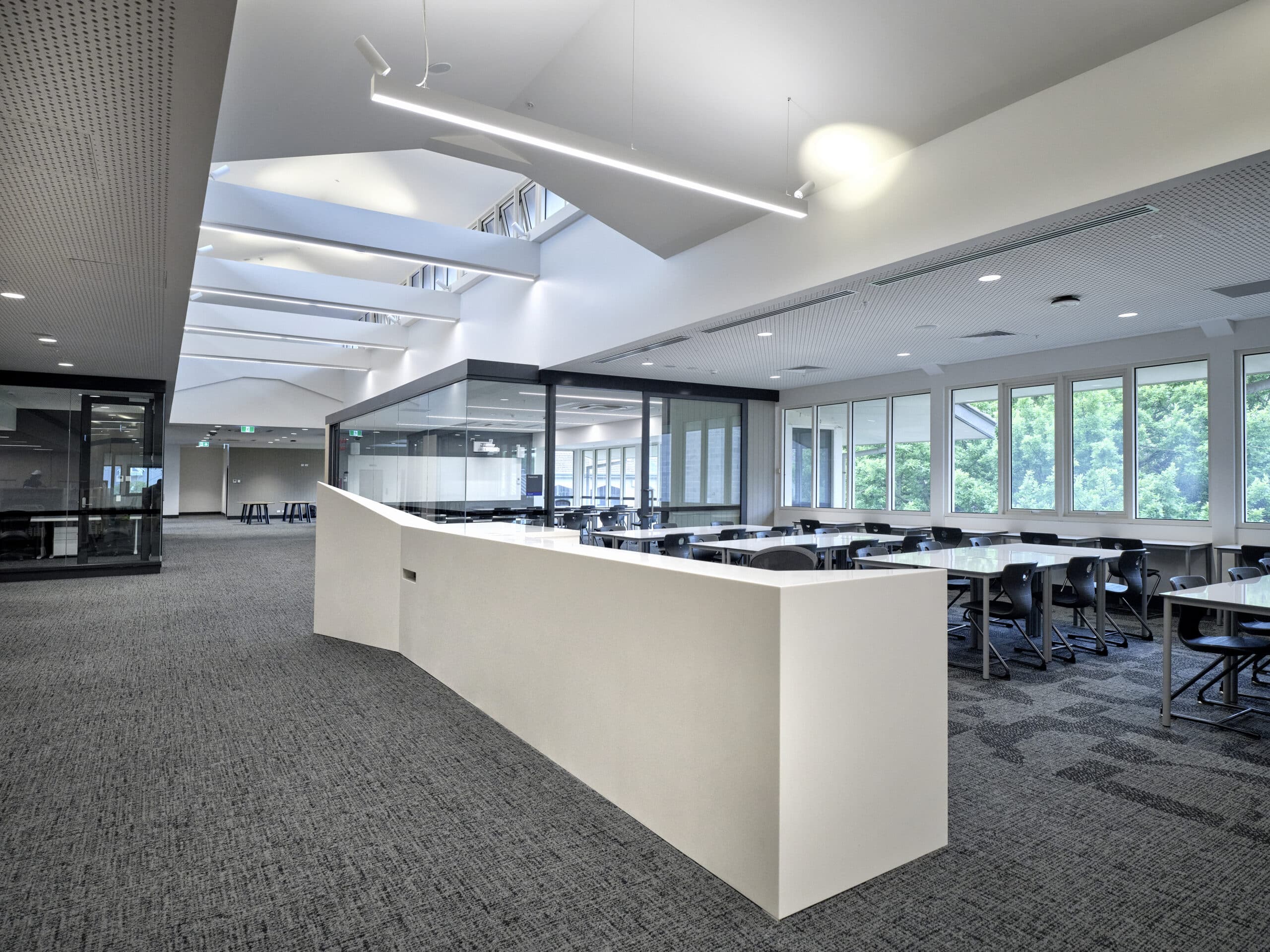 The lighting throughout the facility is controlled via a Dynalite Lighting Control System with all of the AES supplied light fittings incorporating DALI componentry for environmental and situational ambience.